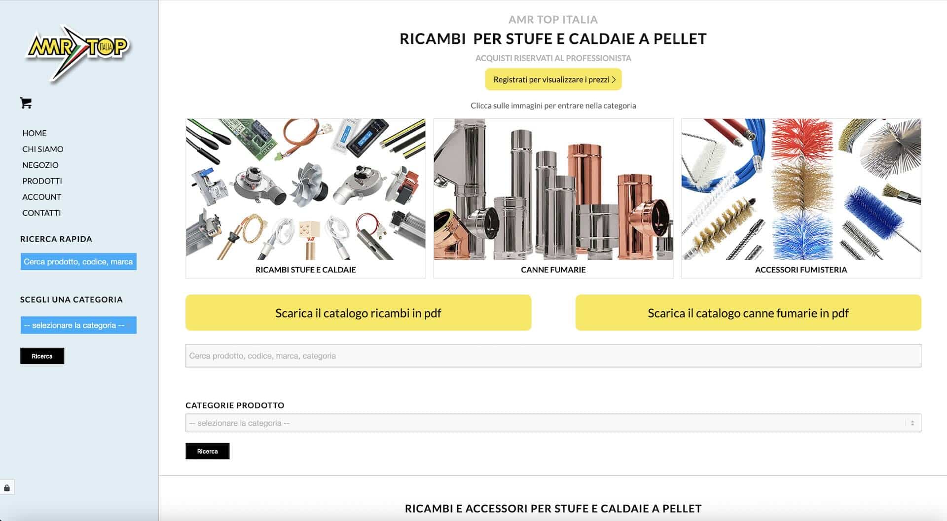 - Creazione di un negozio online riservato ai professionisti, con prezzi visibili solo dopo registrazione